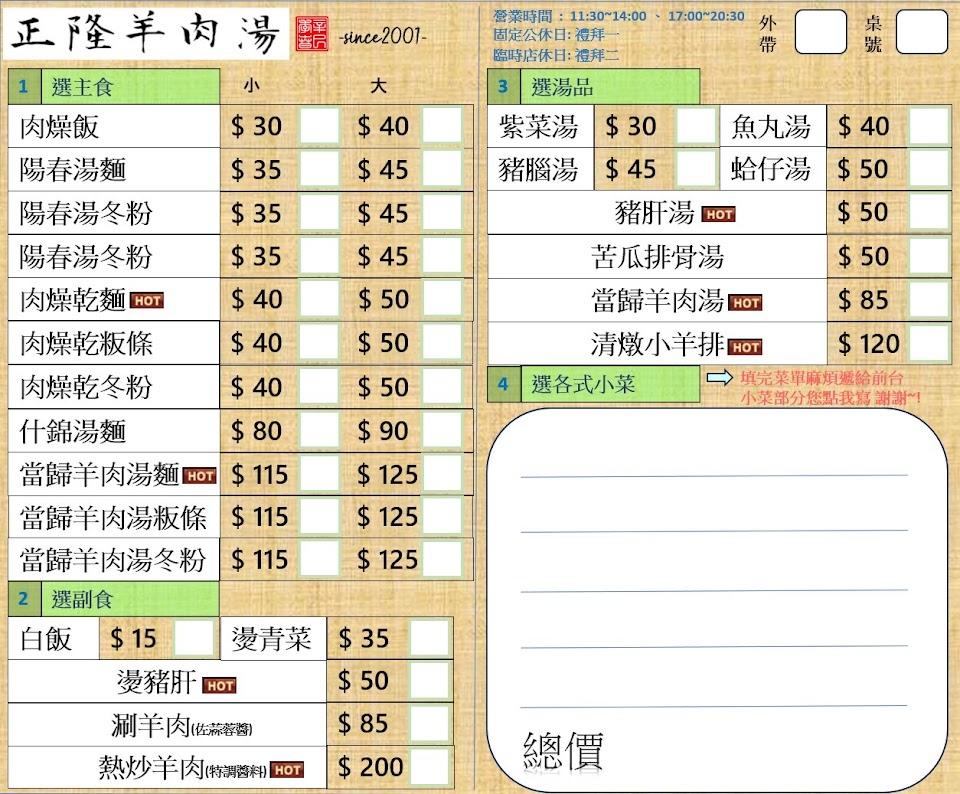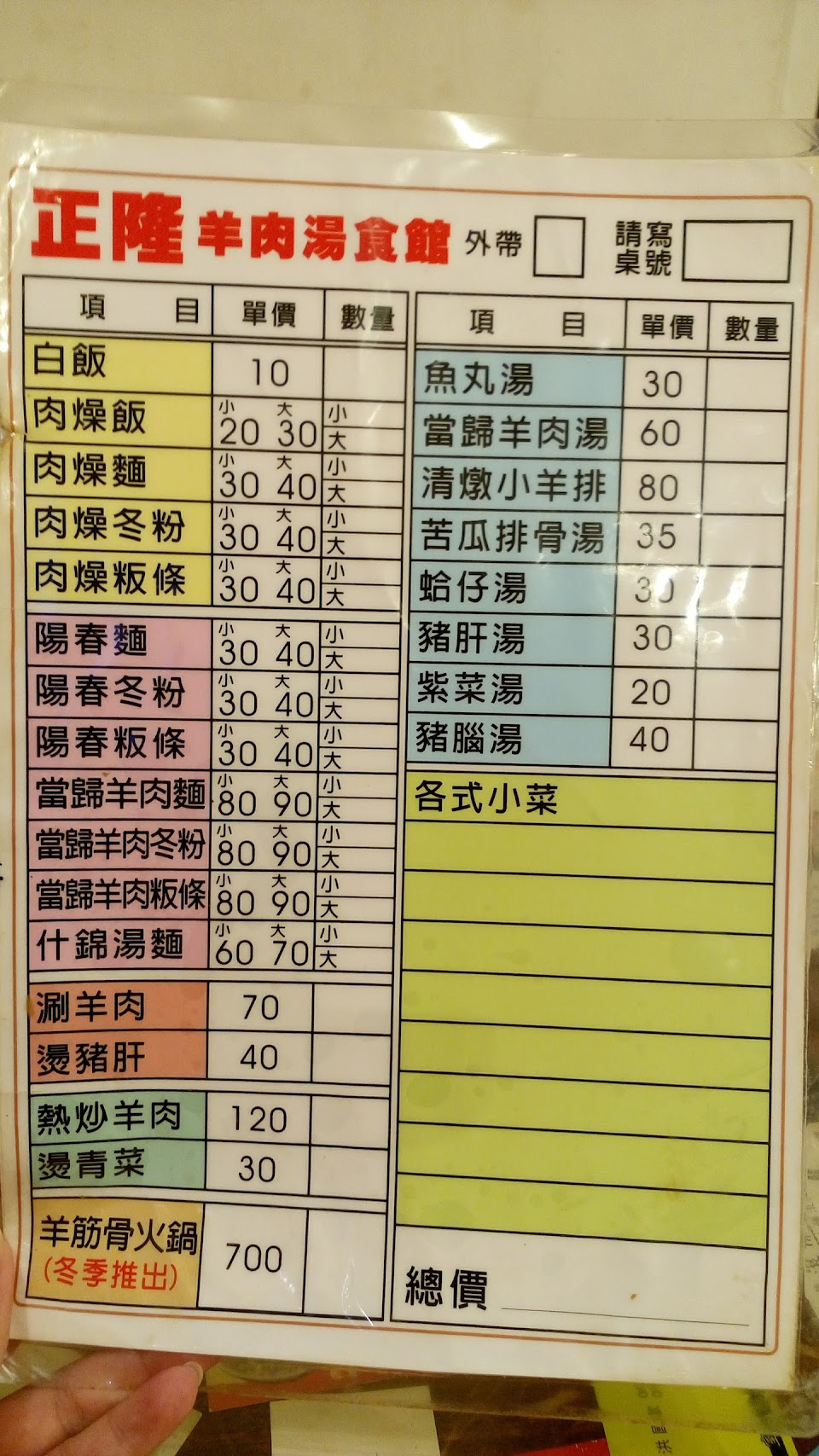 2024最新在地推薦餐廳的菜單_正隆羊肉湯的菜單、圖片
