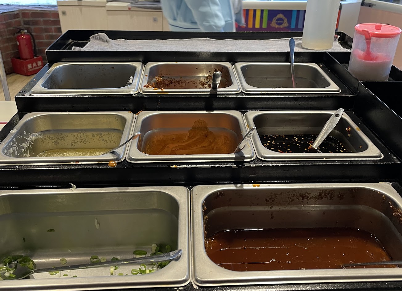明明 寫著營業時間到24點 我21點多進去用餐 醬料區 都沒醬料了 跟工作人員說沒 沙茶 和其他醬料 吃到一半 再去醬料區 想說會補 結果 什麼都沒有 副食區 也都清空差不多 晚上9點 後建議別去