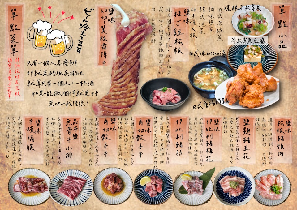 剛開的幾年還不錯,但是現在菜單上的菜色明顯少了,只剩很一般夜市燒烤攤就買得到的那幾樣,食材用的也越來越差,牛肉既乾又扁。很失望…