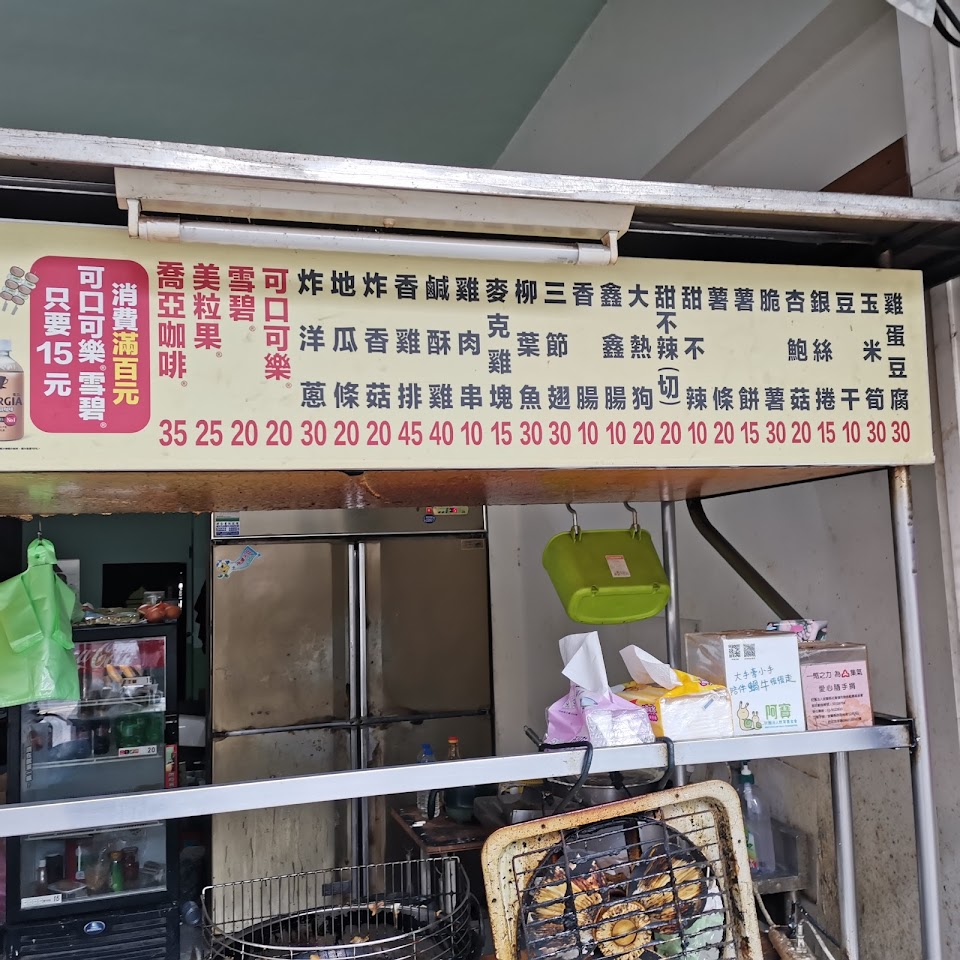 N訪,必點雞肉串NT$10,常有人40~50串的買;闆娘1人作業,客流量大時需等待;地瓜跟甜不辣也推;鹹酥雞吃起來是雞肉串無竹籤版本