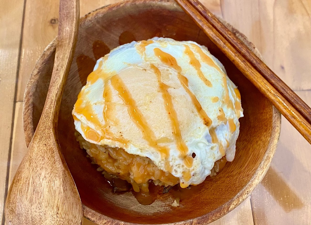 起士蛋油飯好吃,醬料選擇多元 但個人還是選擇最搭油飯的甜辣醬 油飯粒粒分明,半熟蛋搭配半融化的起士一口吞下,濃郁香氣跟飯香交疊,實在美味。