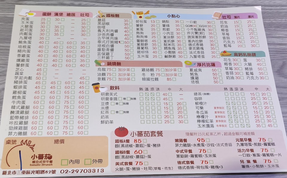 2024最新在地推薦餐廳的菜單_小蕃茄複合式早午餐(三重美食/鍋燒麵/早餐/菜寮美食)的菜單、圖片