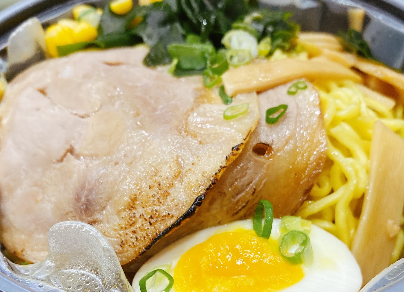 薄叉燒兩片+海帶芽+玉米竹筍+溏心蛋