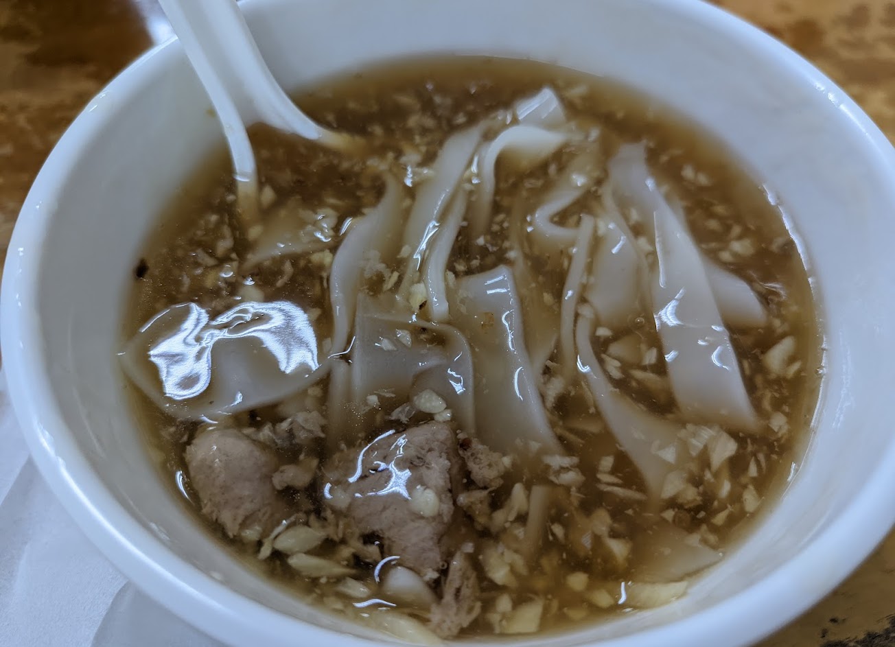 蒜味超級鮮明,板條份量不多,碗倒是不小。店內空間寬敞