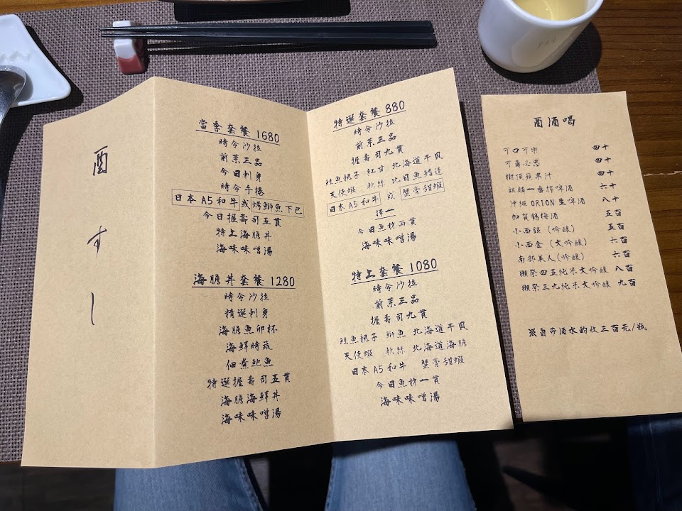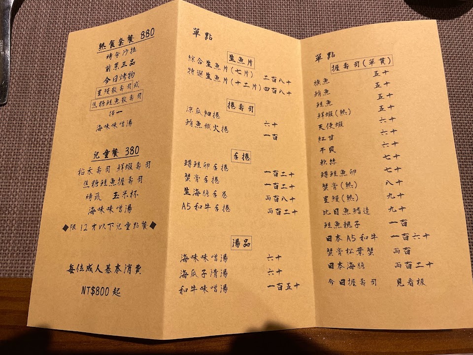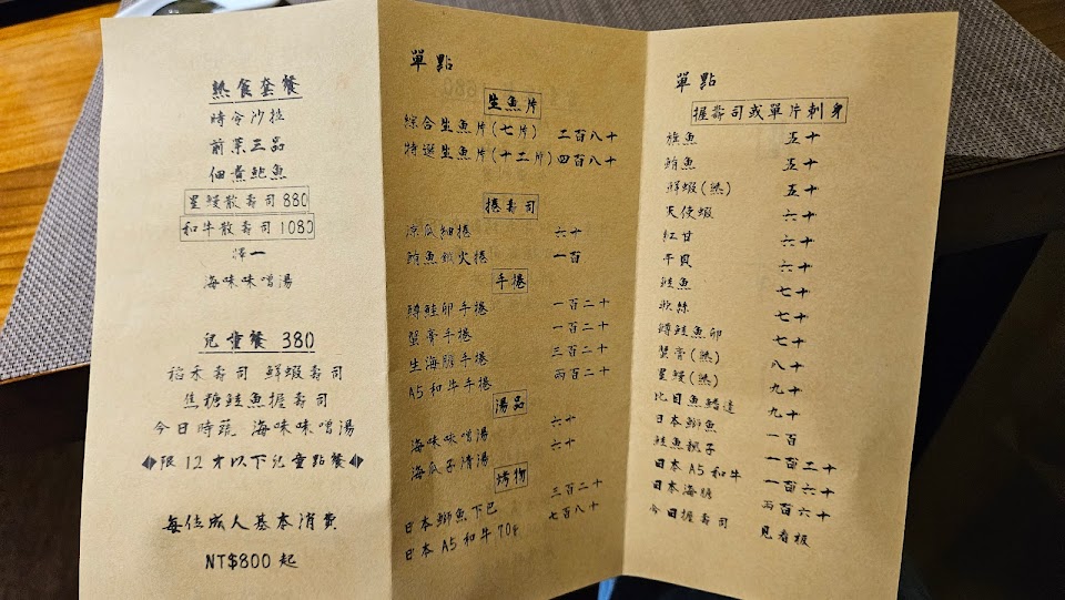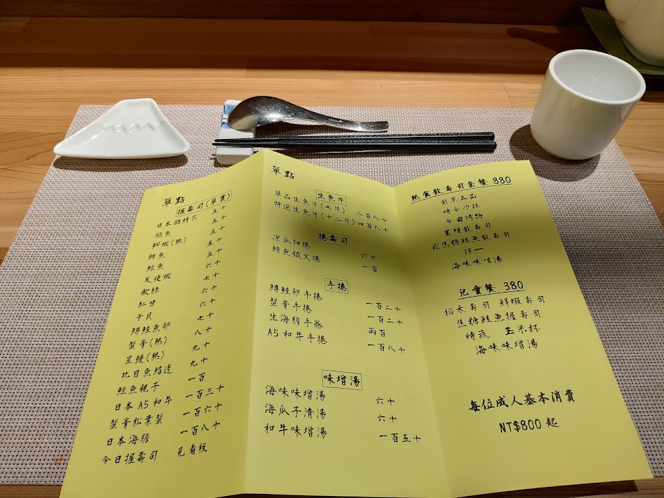 用餐環境舒適、師傅親切、菜單字體漂亮賞心悅目。