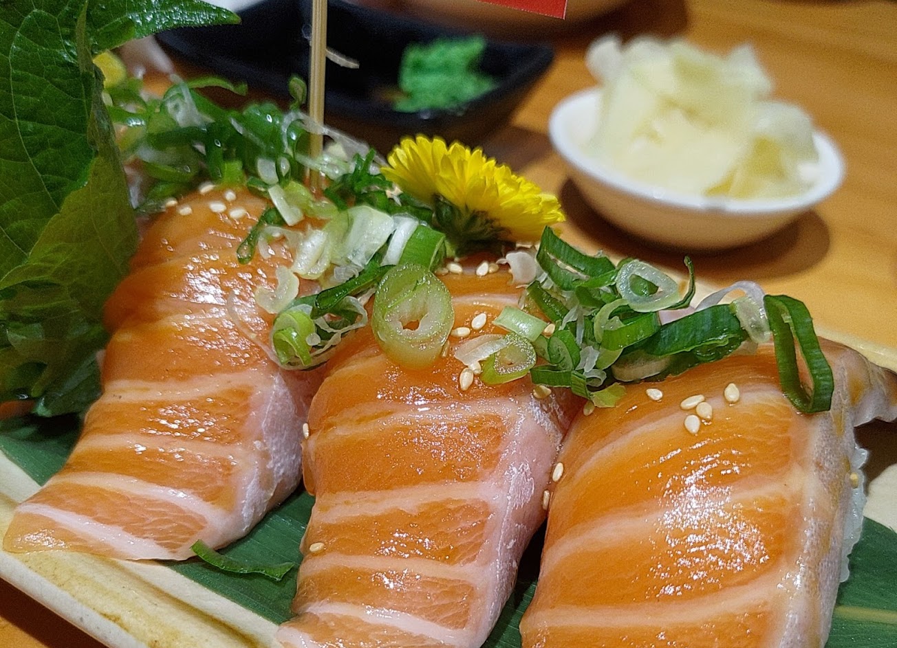 沒看過那麼大片的炙燒鮭魚⋯ 建議兩個人來可以一起點個丼飯,再一起點壽司其他好吃的!