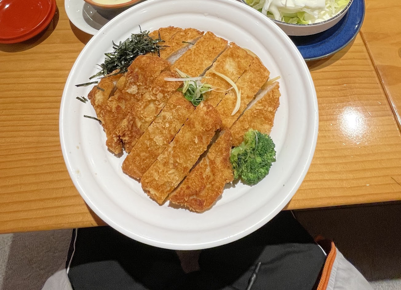 食材新鮮、份量多、送的味增湯很有誠意,有滿滿鮭魚骨肉。豬排很酥好吃,味道均衡不會太重。