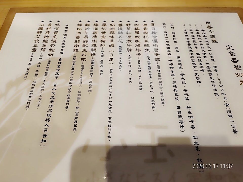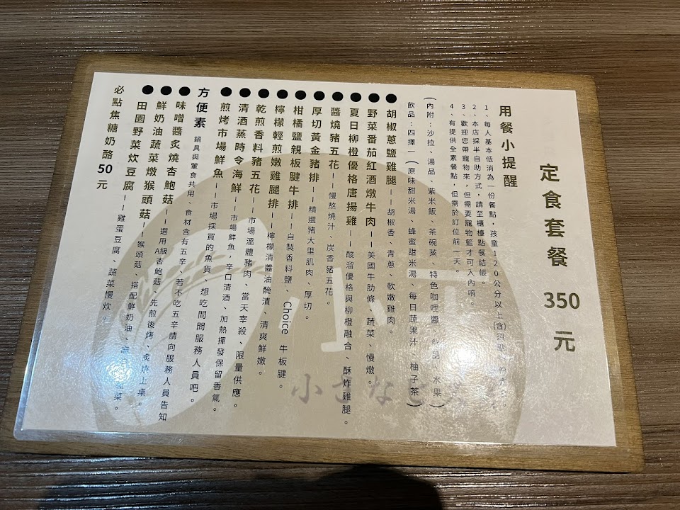 套餐均一價350,小菜、紫米飯、咖哩醬都可以免費續,每餐還附手寫小卡片…整體CP值高,還不錯值得推薦?