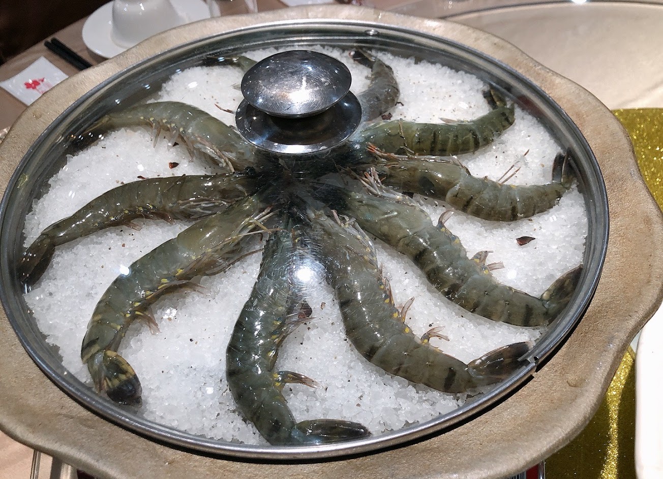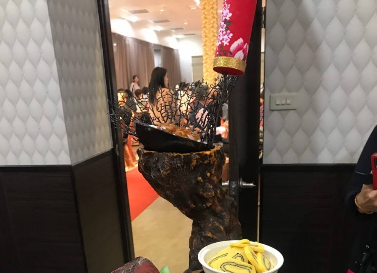 首先食物真的是超棒~~~ 我們是一桌5500$的價格 >第一道:冷盤 就很驚豔 擺盤的有夠彭派 甚至忘記吃最上面的那盤(裡面是花枝XD >第二道:鹽烤蝦 算是很好剝殼的新鮮蝦子 >第三道:鴨肉拌飯 真的是超好吃 老媽一直念念不忘說 如果有剩下他要包回家.殊不知好吃到轉了一圈半直接被吃光XD >第四道:雞湯 就雞湯 >第五道:螃蟹牛奶鍋 這便建議廚房 可以幫忙把蟹螯的部分 稍微敲一下 老人家 很難咬 殼滿硬的 .超好吃的這道牛奶鍋 牛奶還可以續加 >第六道:泰式酸辣什麼 因為本人不愛酸辣 我就沒吃了 媽媽是覺得還行 >第七道:有夠浮誇的腳踏車擺盤XDDD 不知道是薯條炸蝦蛄還是什麼 好好吃 >第八道:豬腳+銀絲卷 光那隻美乃滋龍 我傻眼XD 這麼精細! >很像還有甜點但我忘記拍哩