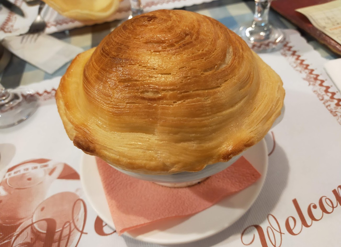 是老派牛排館 簡單的前菜、酥皮濃湯、主餐沙朗肉質軟嫩 還有吃得到蘑菇的蘑菇醬
