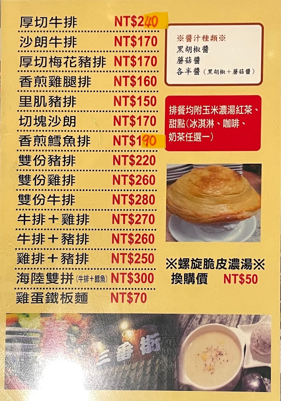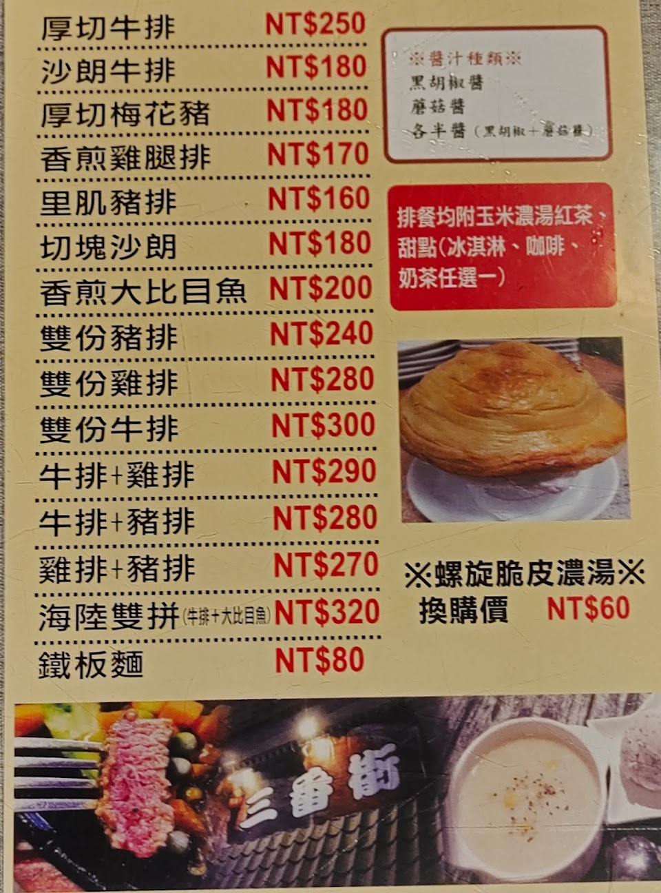 2024最新在地推薦餐廳的菜單_三番街牛排的菜單、圖片