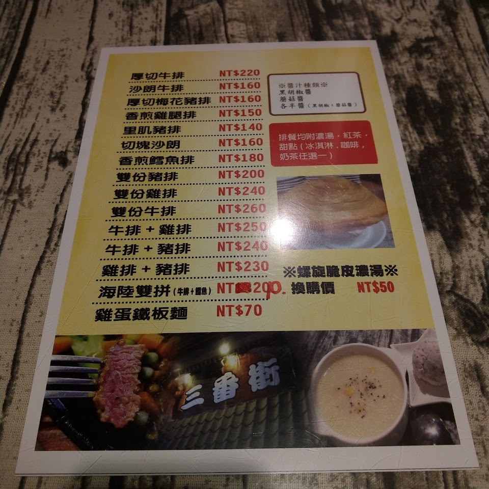 之前一直都有經過這家三番街牛排,在東門夜市路口的旁邊,原本一直覺得看起來很普通,感覺就是廉價的排餐店