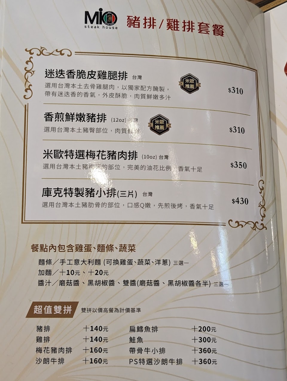 2024最新在地推薦餐廳的菜單_MIO米歐牛排館 – 宜蘭推薦牛排 人氣平價牛排 在地必吃美食排餐 家庭 團體聚餐約會慶生首選 高CP值餐廳 網友推薦好評牛排館 套餐 酥皮濃湯 價格 好吃熱門牛排的菜單、圖片