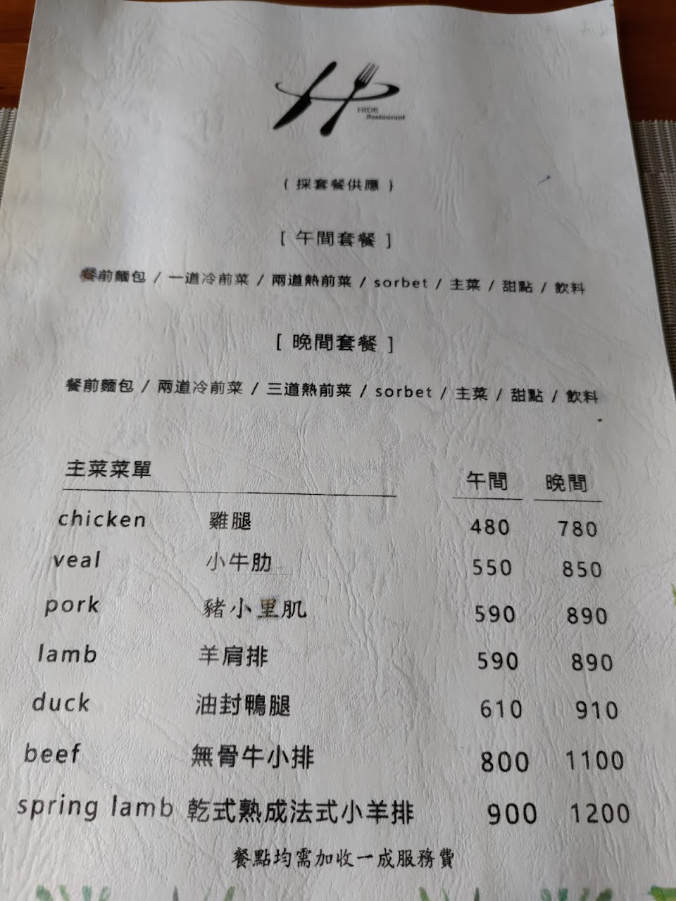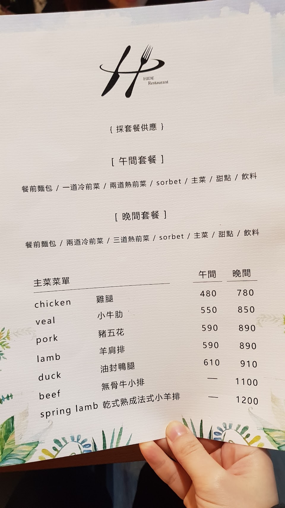 午晚餐,餐點內容不同,價格也不同,需注意。