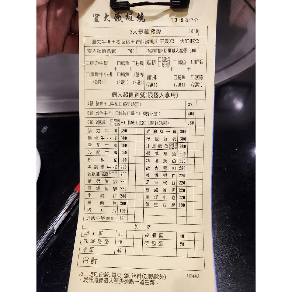 雖然店名叫「宜大鐵板燒」