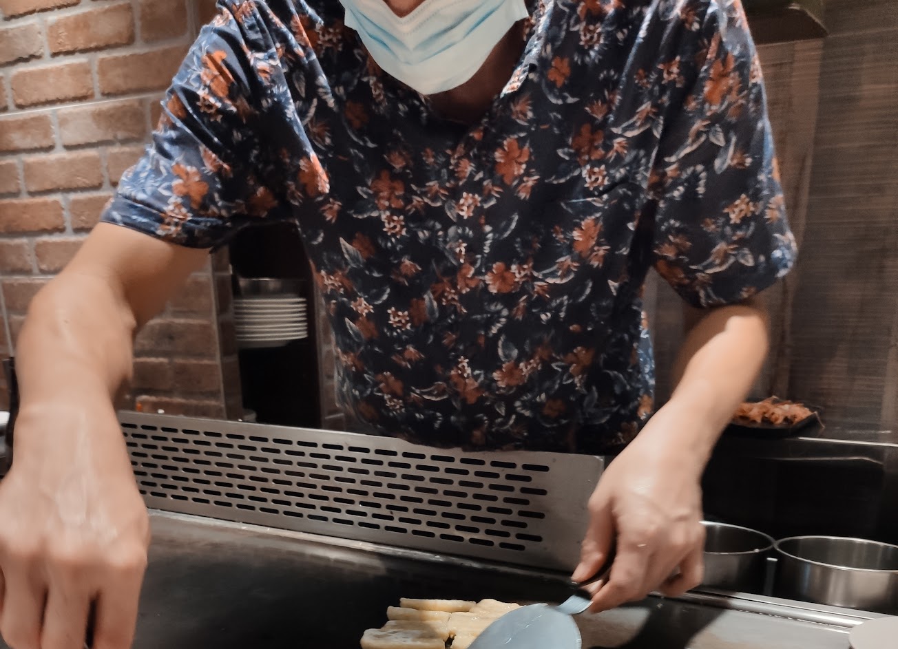 師傅對他的食材很認真對待,感覺像他的小孩一樣,細心呵護的刀切、翻炒,還會仔細擺盤