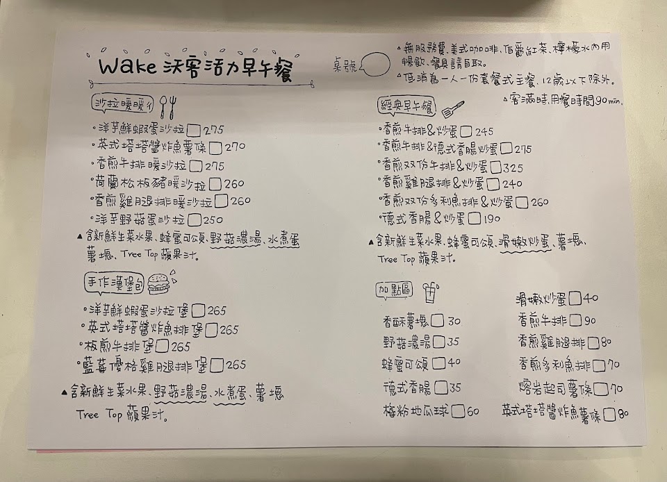 2024最新在地推薦餐廳的菜單_Wake沃客活力早午餐的菜單、圖片