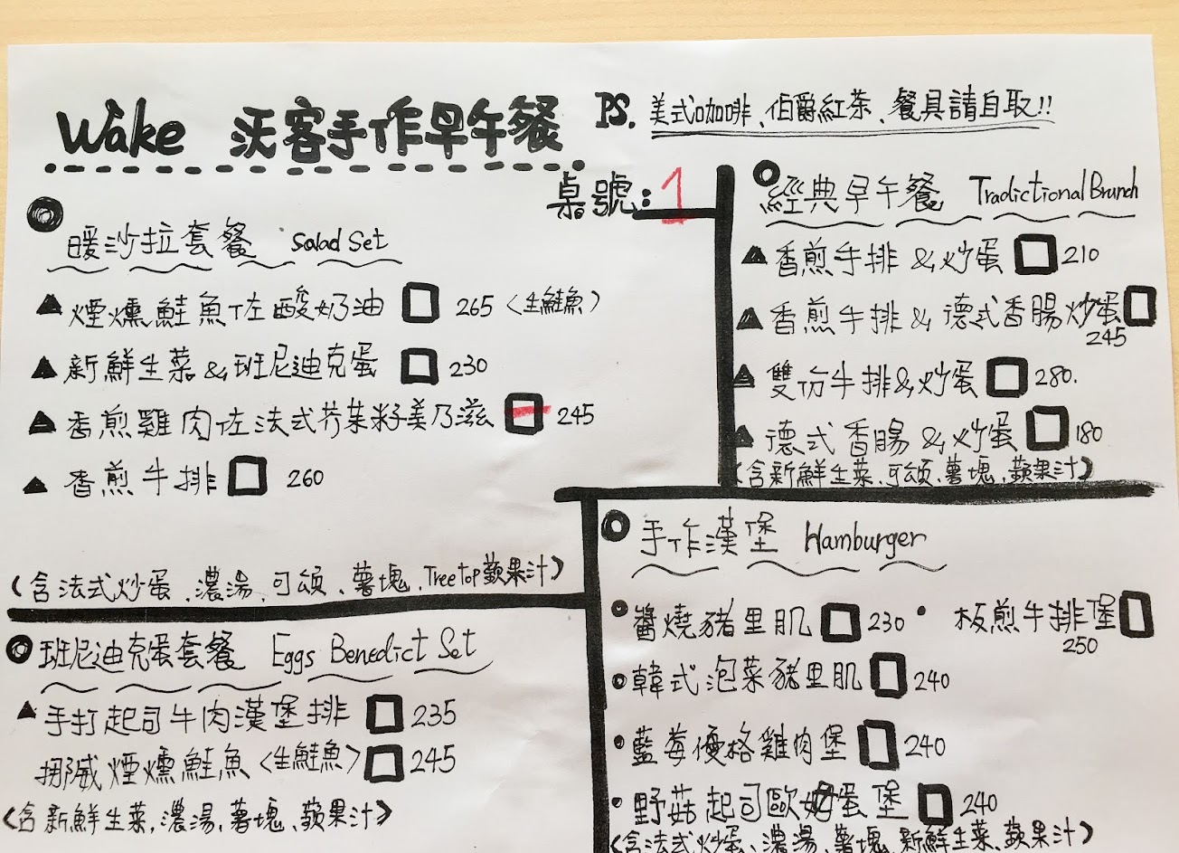 食物很棒!我特別喜歡他們的沙拉。不過菜單還需要改進。極難閱讀。
