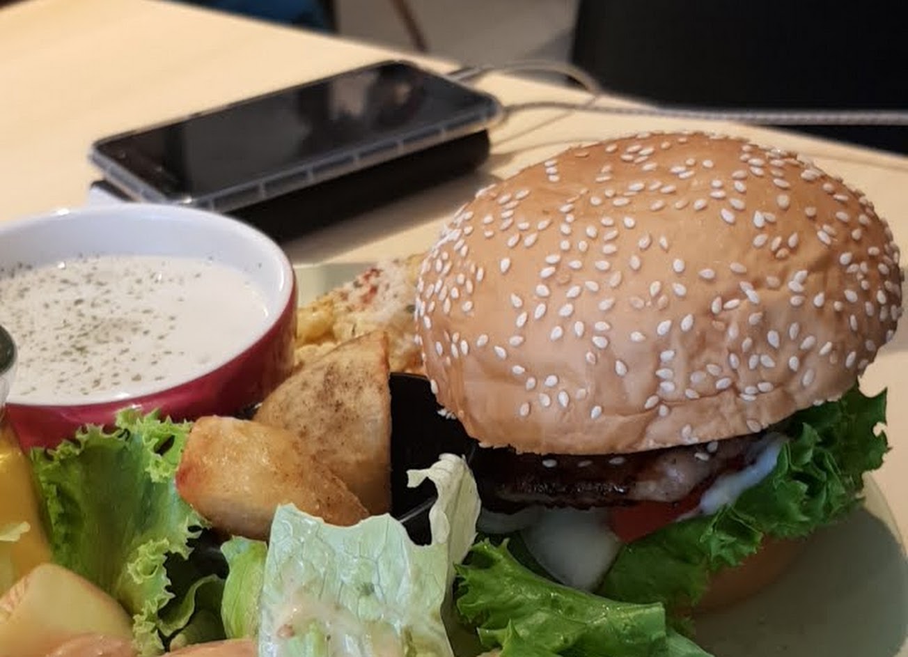 好吃,大推手作雞肉藍莓優格漢堡,肉很好吃。 其他就普普通通。 室內都是油煙味,價格不是很美麗…
