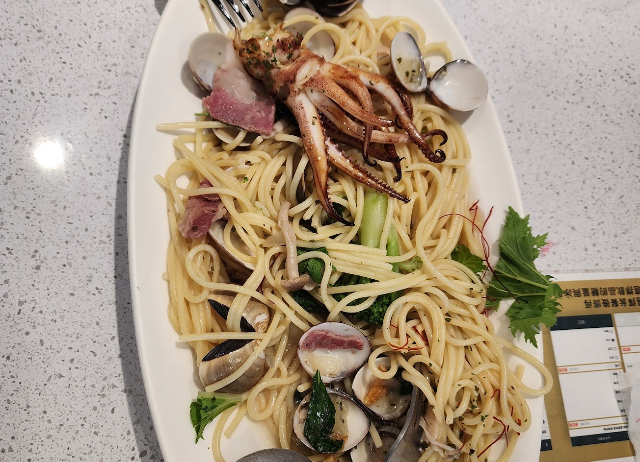 1、番茄海鮮麵,海鮮有蛤蜊、蝦子、花枝,調味清爽,不錯吃。