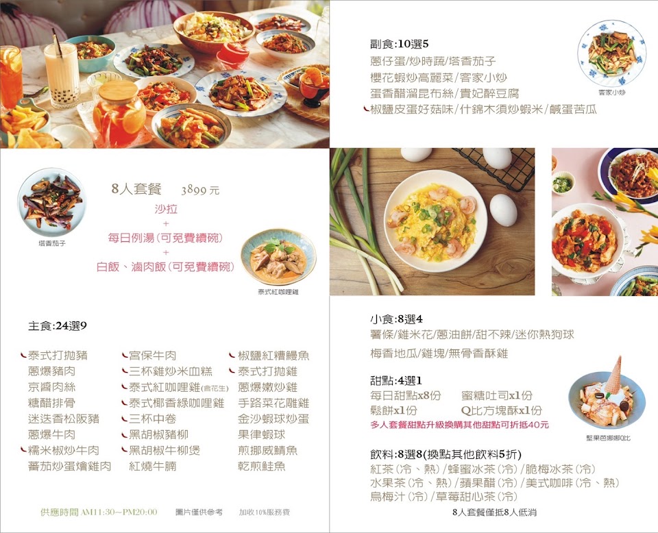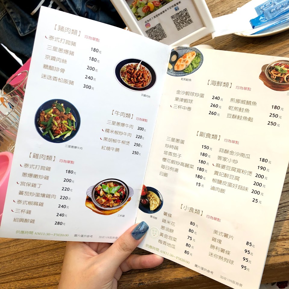 時蔬, 客家小炒, 泰式打拋豬, 滷肉飯, 蝦球炒蛋, 玉米濃湯
