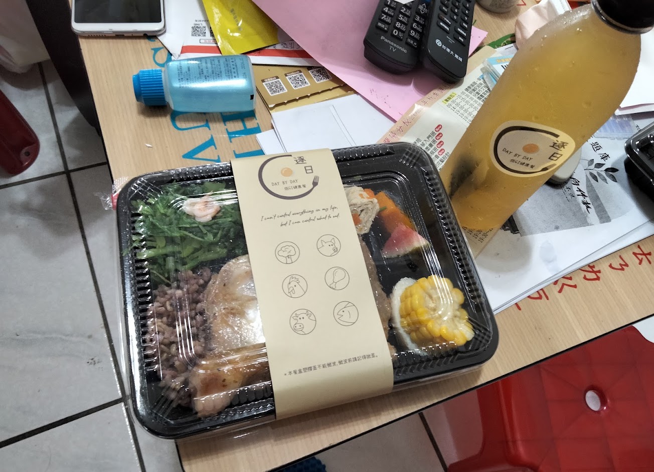 飯可選五穀飯或紅黎飯,菜色固定,沒什麼變化,牛肉筋很多,雞肉算嫩,雞腿有股腥味……,基本上中規中矩,不會過度調味,相對健康。