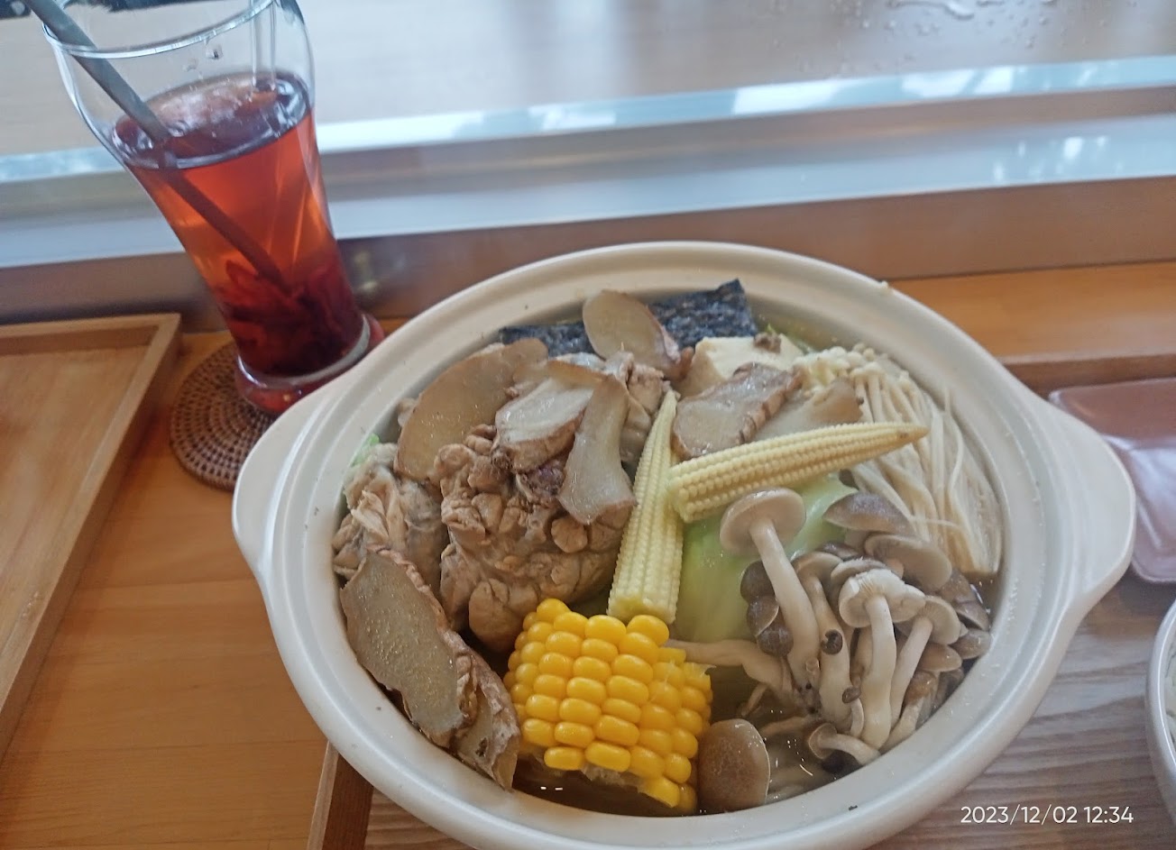 主餐選擇加量的陶鍋,是加蔬菜跟菇類的部分,飽足感很棒,口味也非常好。