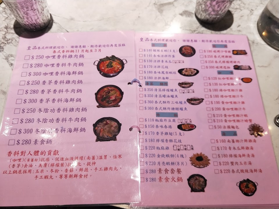 2024最新在地推薦餐廳的菜單_皇品泰式料理(目前網路訂位無法顯示,如需訂位請來電預約。的菜單、圖片