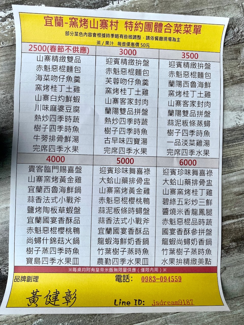 2024最新在地推薦餐廳的菜單_宜蘭窯烤山寨村的菜單、圖片