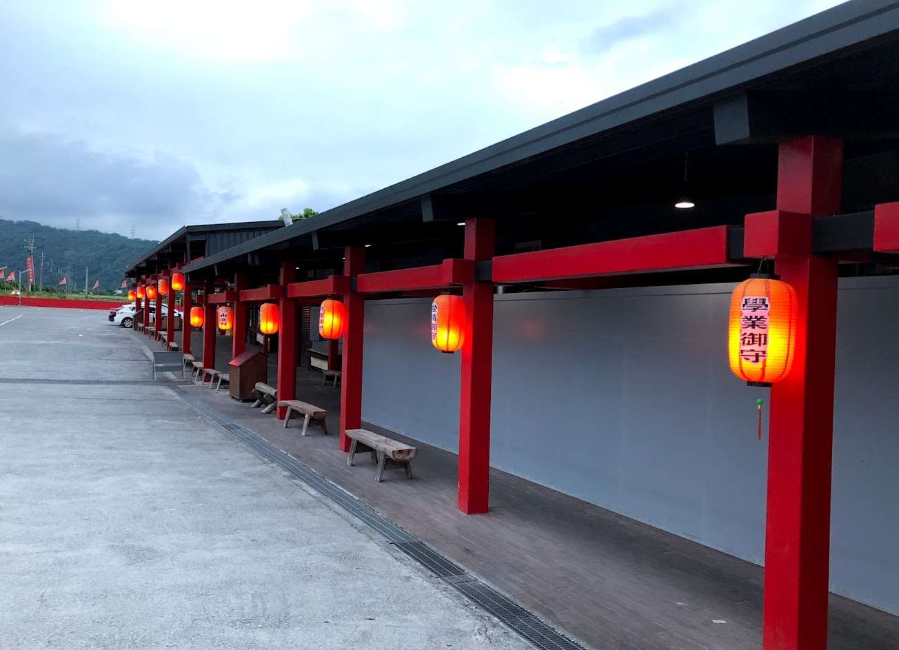 其木製建築搭配巨大的紅色燈籠,展現濃濃的日本風味,巨大的紅色赤魁和充滿特色的裝飾造景,讓人產生猶如來到山寨版妖怪村的錯覺,造型非常特別醒目,不免駐足感受。