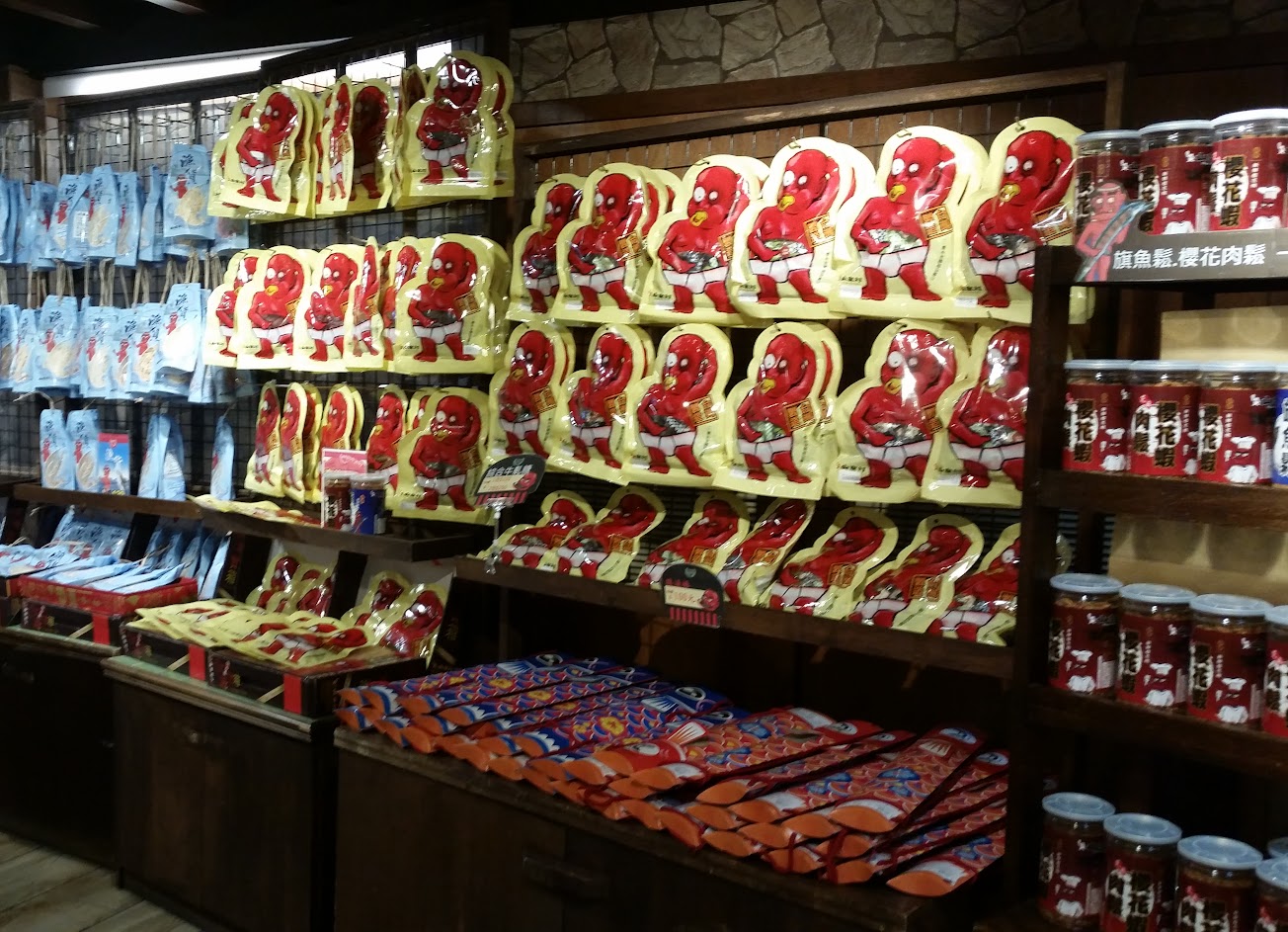 其他蛋捲跟餅乾相對味道就不夠亮眼,蔥味不夠明確。也有賣一些復古商品如彈珠汽水、迷你彈珠台等等,就沒與妖怪風格做連結。