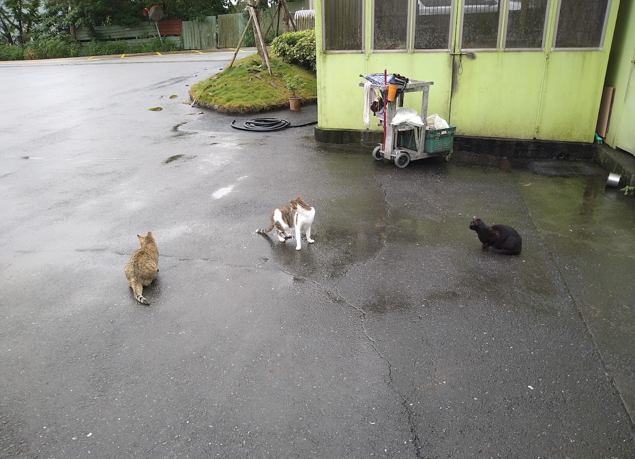 店內有紅鼻子天狗 大人偶 門口有可愛小貓