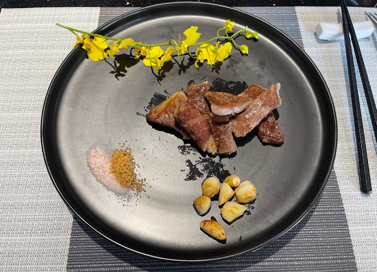 美國翼板牛排點了5分熟 肉質的話個人覺得普通 但不知道是不是師傅忘記了 有些人有放蒜頭 有些人沒放蒜頭