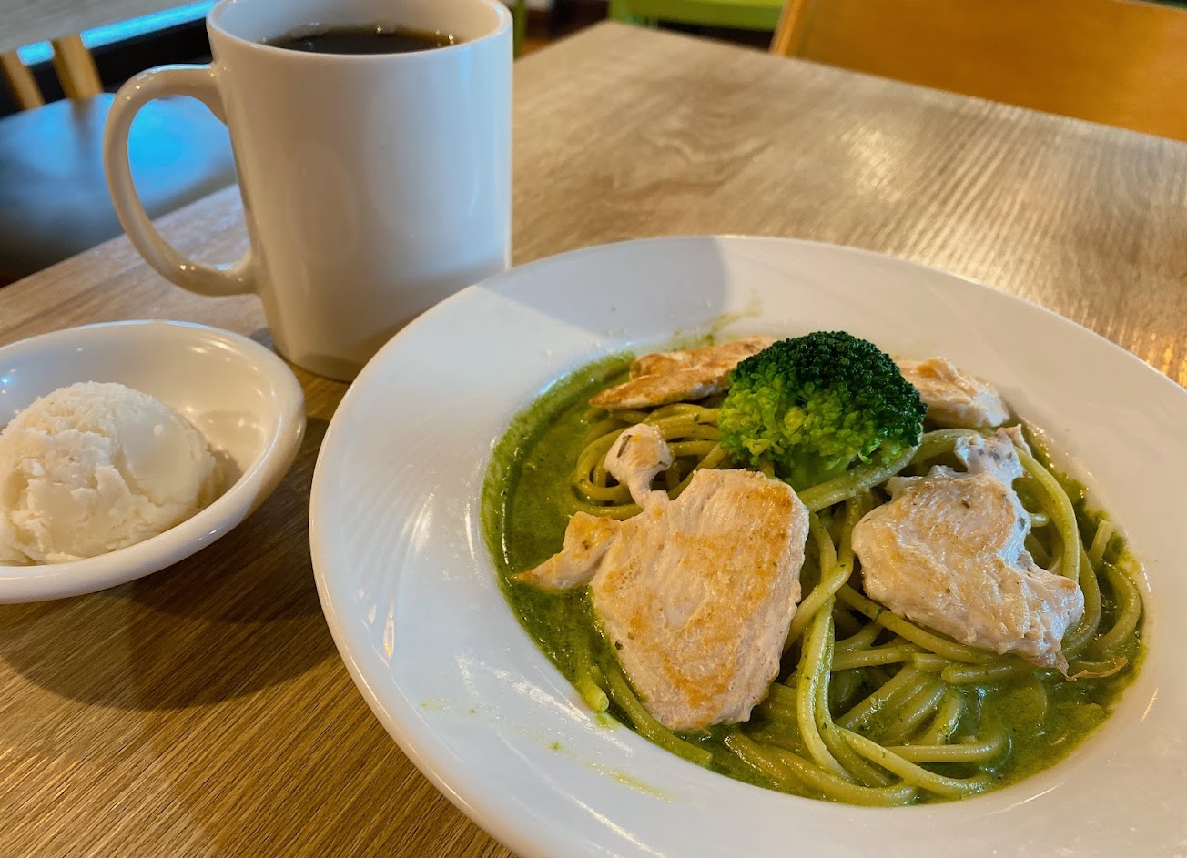 青醬雞肉義大利麵🍝,麵蠻多,醬料蠻濃稠不錯吃