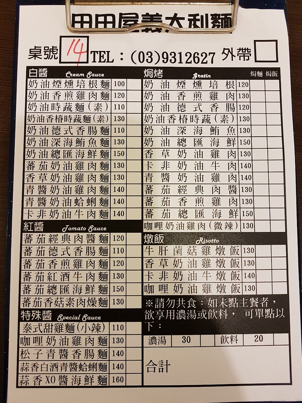 2024最新在地推薦餐廳的菜單_甜屋(田田屋)義大利麵的菜單、圖片