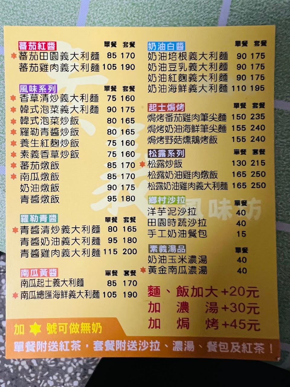 素食義大利麵,味美cp值高,老板及老板的媽媽很親切,雖然場地有點小,但值得一去再去