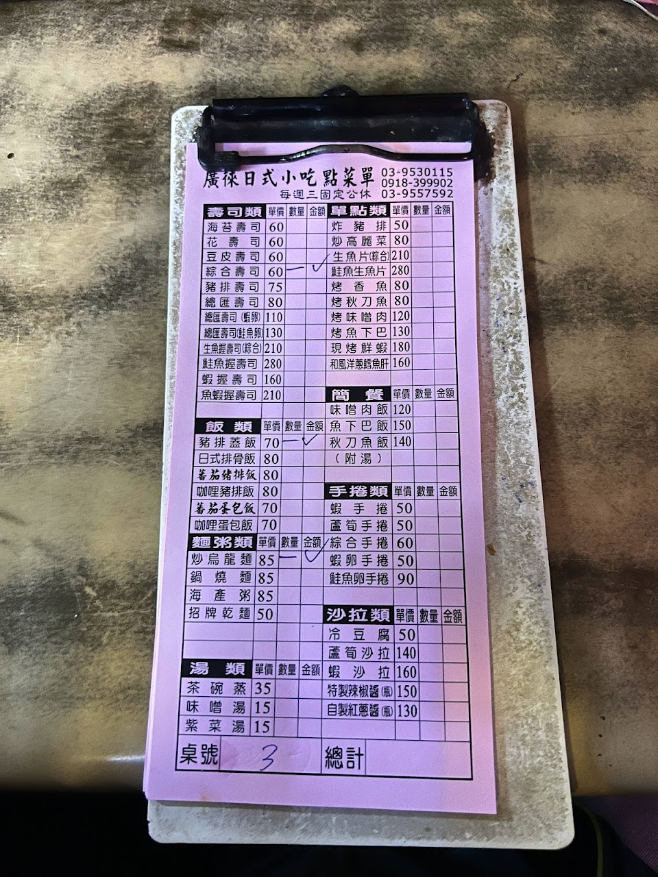 店小小的,很有日式特色感覺,位子不多,每次來也是畢竟過這條路,都看到訂單滿滿人人多在等餐,因為在夜市已經吃了一些東西,就點了手卷來吃,好吃但我邊吃邊掉?,鍋燒麵是朋友吃她說好吃但還是偏愛花蓮媽媽桑的鍋燒麵? …