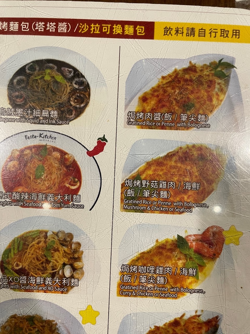 內用點焗烤飯滿安全的,義大利麵就……看個人口味吧?