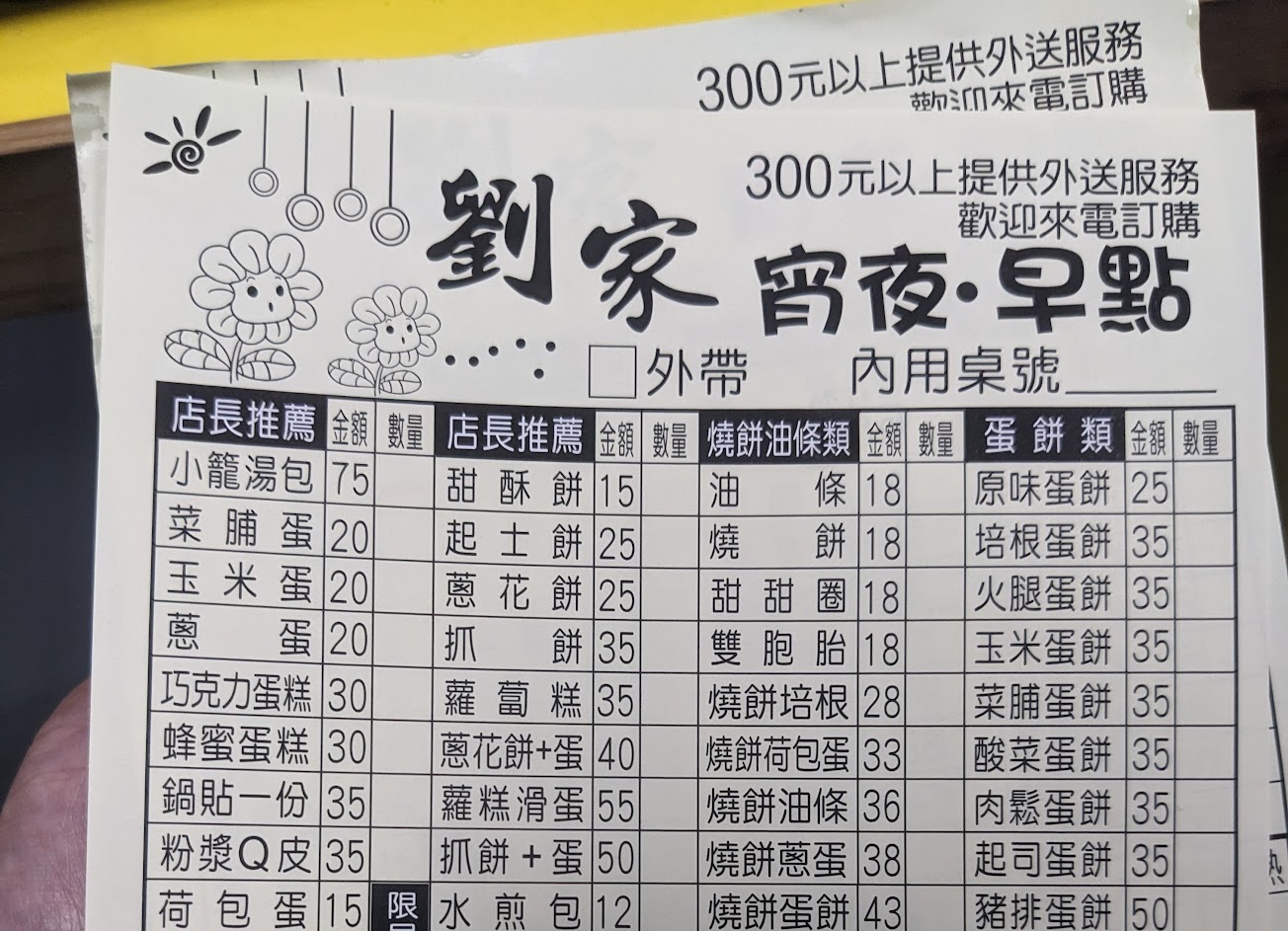 2024最新在地推薦餐廳的菜單_劉家古早味早點‧宵夜的菜單、圖片