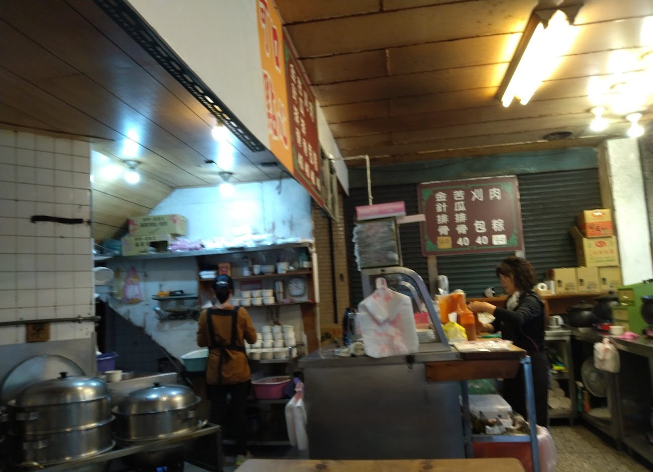 品項簡單就是苦瓜排骨湯、金針排骨湯、割包、粽子四種,每樣價格都是40。割包比較小所以也比一般台北吃的便宜,麵包略乾,還有老闆加的醬吃不太習慣而且覺得太鹹,但是肉本身滷的不錯,其實可能喝湯會比較超值。現場座位不多而且沒電風扇