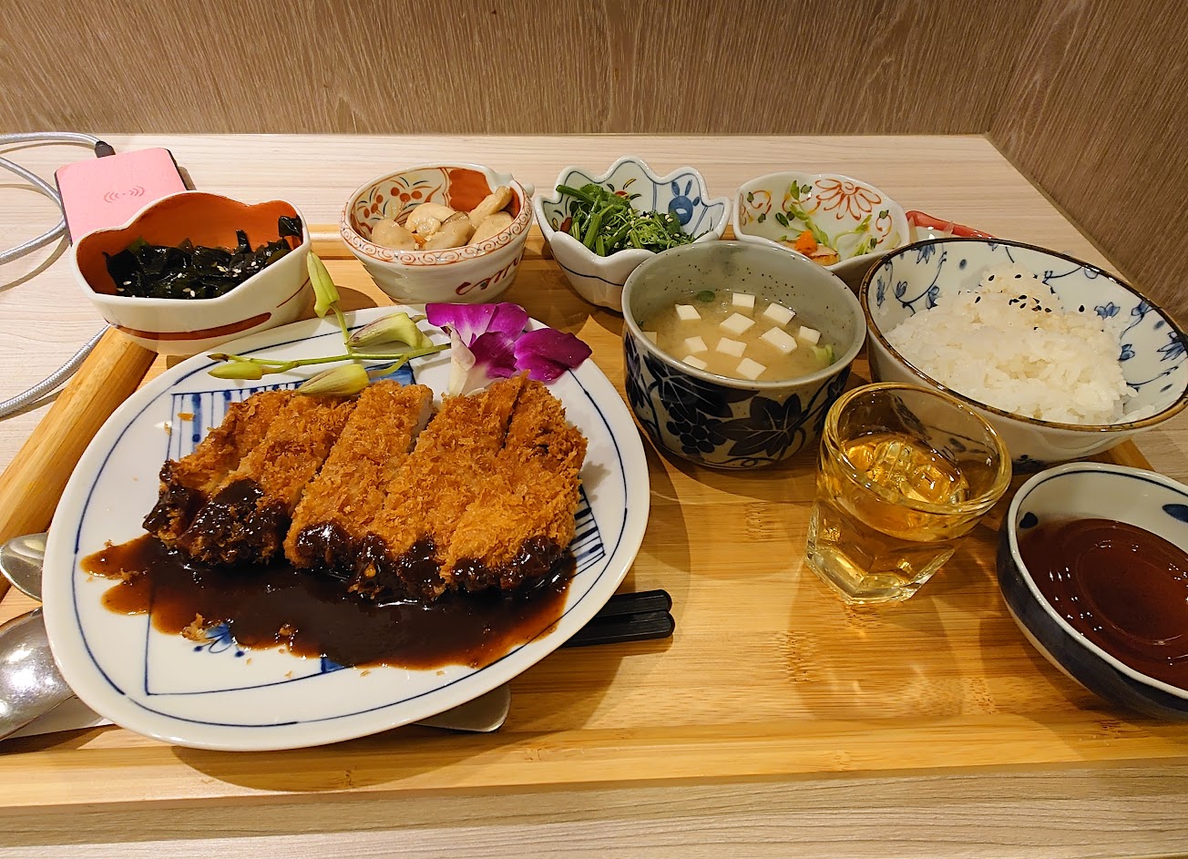 屬台式口味日本料理,豬排炸得很棒,皮脆肉實,口味比較重,但小菜一流,超級下飯。門口可停車很棒,白飯可續,份量很足。