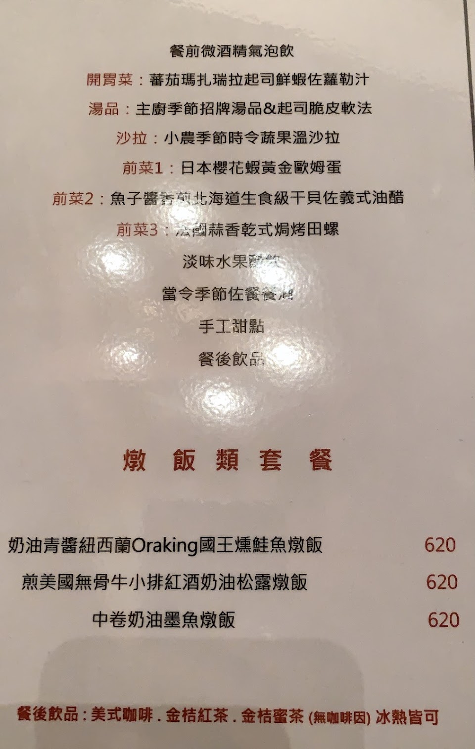 只需選擇主餐和飲料 其餘已固定菜色