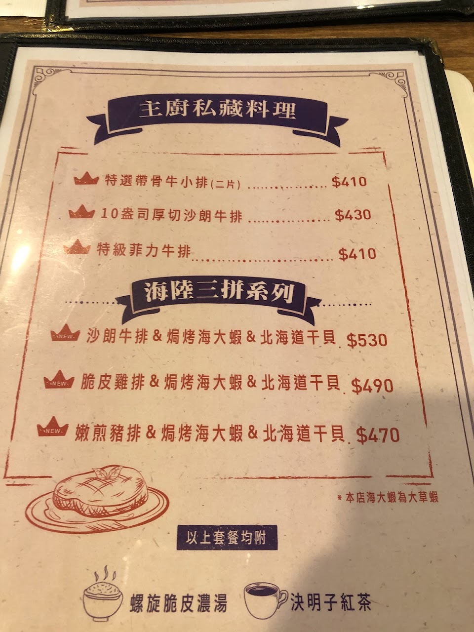 酥皮濃湯? 沙朗牛排240跟雞排200也ok 服務?