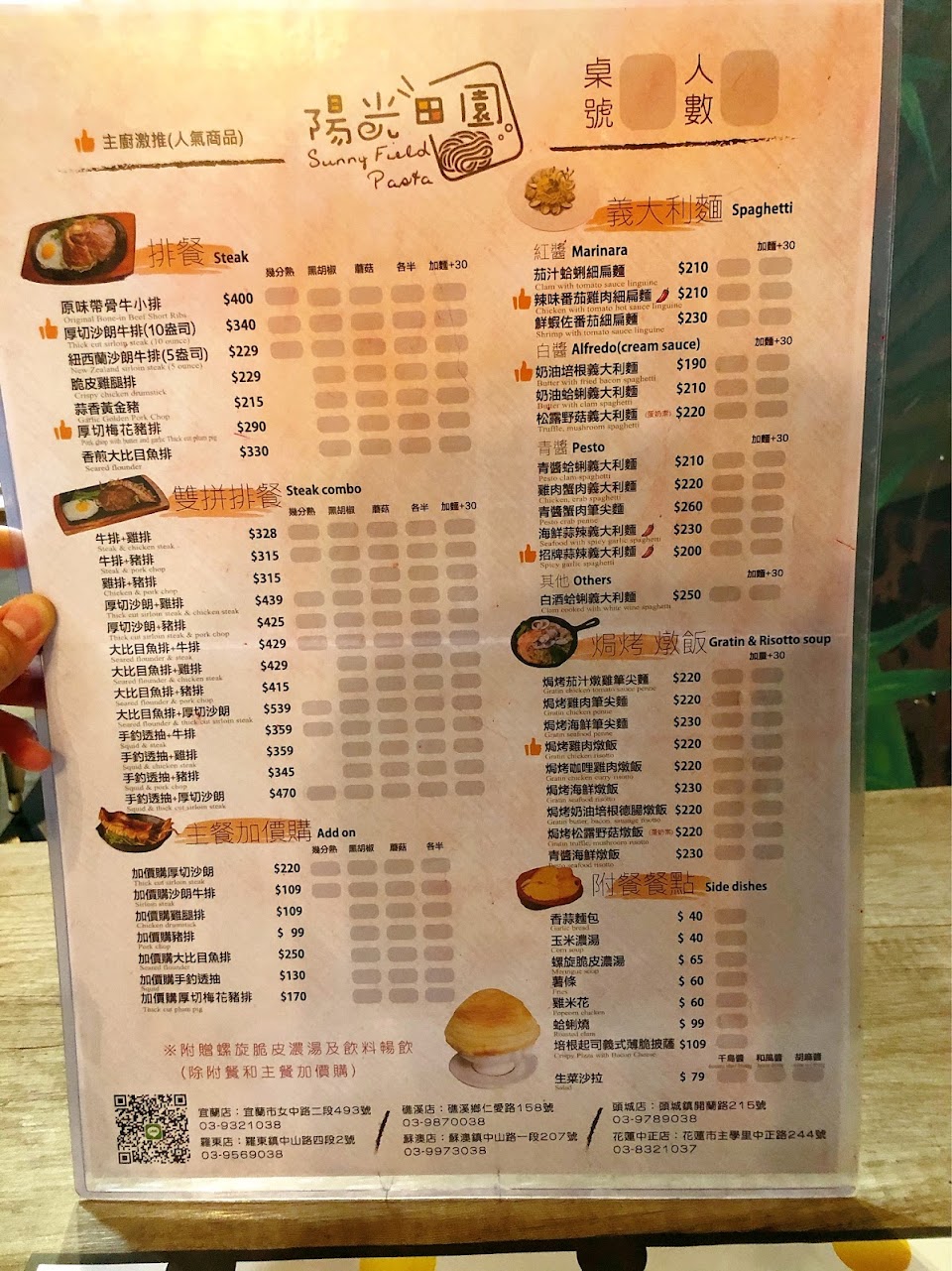 2024最新在地推薦餐廳的菜單_陽光田園Pasta(羅東店)的菜單、圖片
