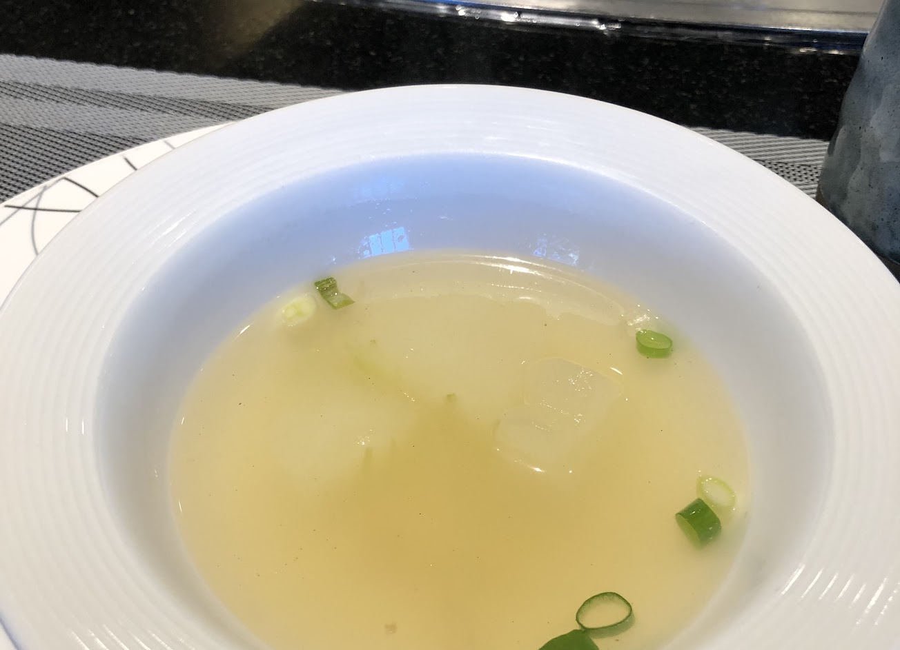 今晚是選擇1500元無菜單料理, 水果:普通、不甜 海鮮南瓜濃湯:南瓜味淡、湯生生的感覺 馬頭魚:皮酥柔嫩好吃 絲瓜:普通 蝦:蝦子新鮮、蛋味道很膩 小白菜:不太好吃 鮑魚+干貝:還不錯 主菜和牛:一片…….這是我吃過主菜最少的一間鐵板燒 櫻花蝦炒飯:沒什麼味道、飯炒太乾 銅鑼燒:普通 ,整體口味只能說很普通,cp值不高,還有鐵板燒的重點是師傅要介紹菜色、與客人互動才對,今天這位師傅好像新來的,從頭到尾都沒說話,整體鐵板燒用餐氣氛不佳。