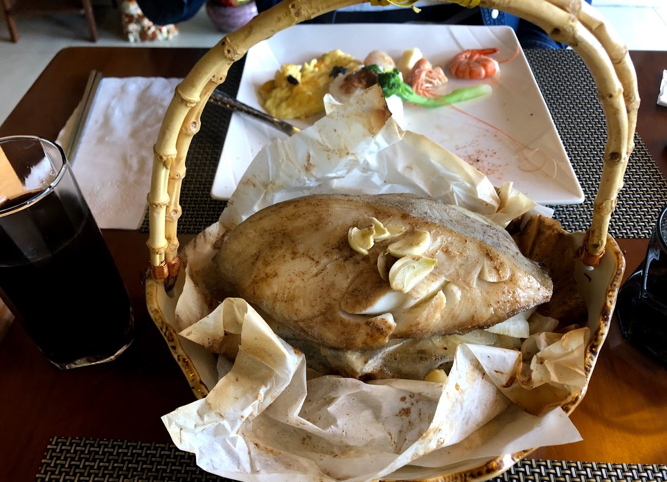 我覺得這間主要可能就是吃魚的吧? 我們一行人9個,要松阪豬沒松阪豬,要豬叻排沒豬叻排,主餐選項很少,想吃的餐點都沒有。 一直要改來改去的,服務人員說話其實很不清楚。 餐前會有綜合果汁,應該是完全不加糖的,喝的到很多水果的感覺,但是就是太淡了。 主餐的肉份量很大,餐後甜點也不錯吃,這大概是唯一讚許的地方。 在用餐等待的時候,一直有蚊子飛來飛去,我們還在那邊打蚊子。 整天來說整間的氣氛還可以,但是不會再讓我想去第二次。