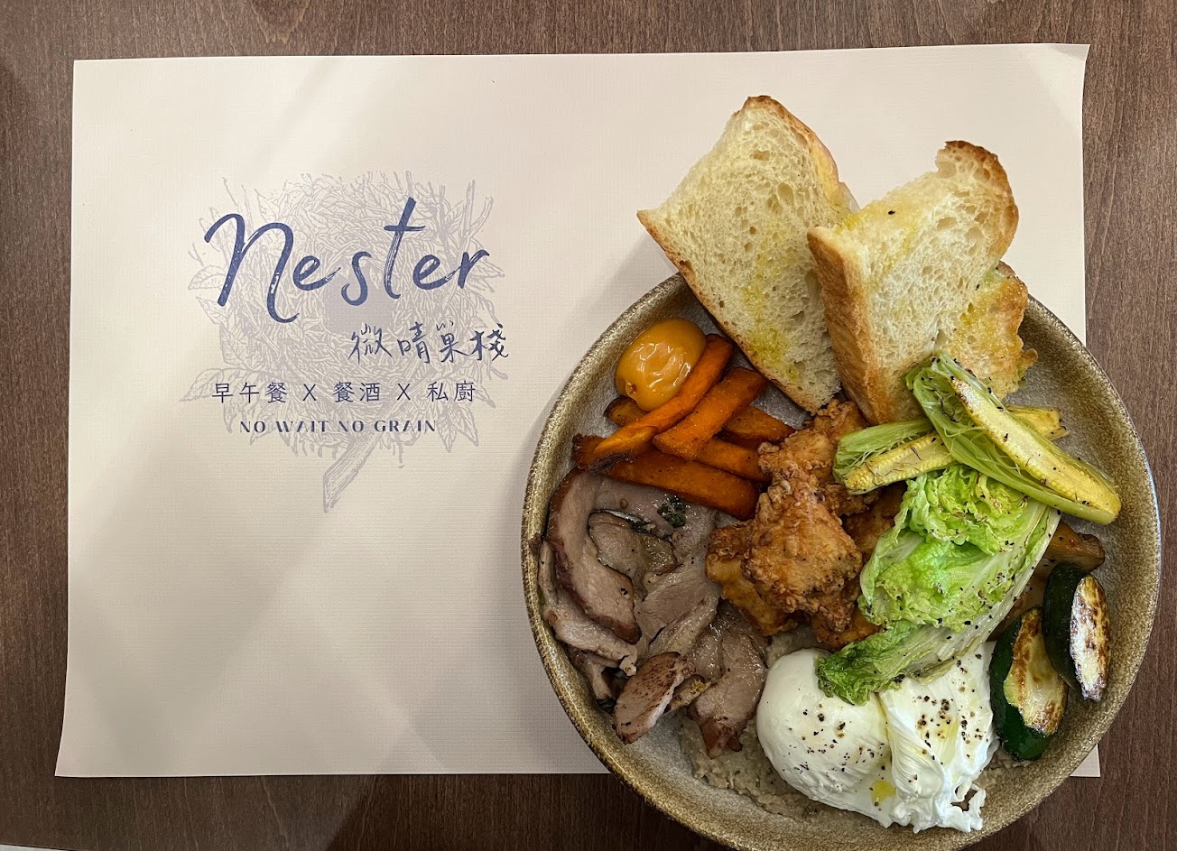 餐點特別,還可以自己組合喜歡的餐點內容。只是口味有點創新,老公及小孩都吃不太習慣。但生菜或是烤蔬菜對我來說都很好吃!服務員還特別提醒打卡送小薯,真的好吃,用五倍卷還免一成服務費,用餐環境很舒適!