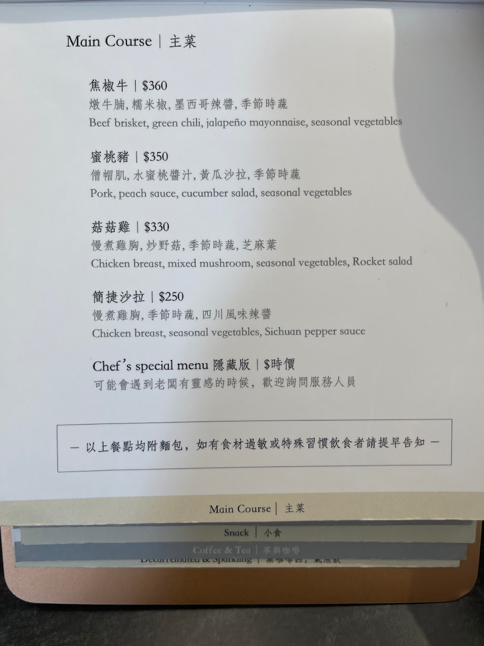 這次點了特製餐點-花椒油封僧帽肌,肉質軟嫩,份量恰好