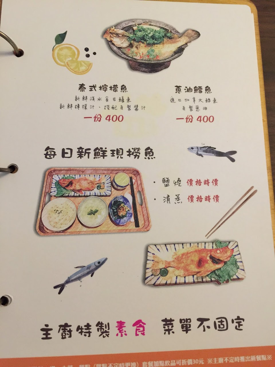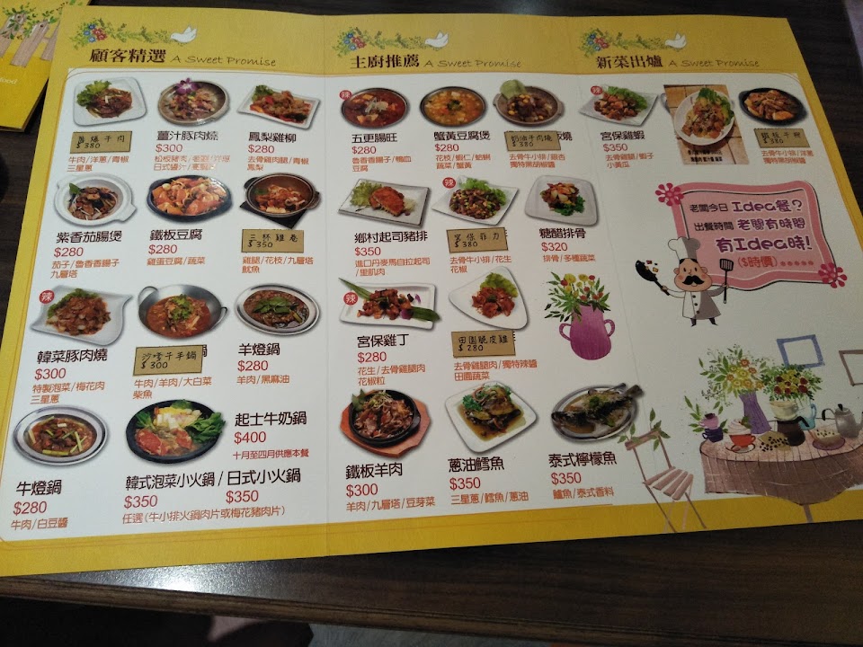 主餐:鳳梨雞柳$290/宮保雞丁$290/泰式檸檬魚$350