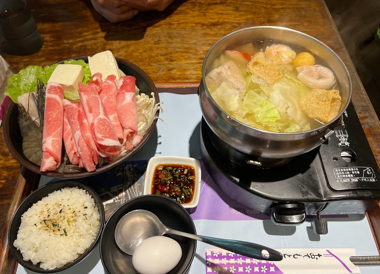 復古式建築,附近停車位可能要尋找一下外面都是黃線居多,機車可以停在裡面,餐廳內位置多有分室外跟室內,建議事先訂位,當天有坐到包廂的位置,店員較冷淡,餐點好吃,火鍋份量很足夠,蝦子蛤蜊新鮮,建議店家事先詢問客人醬料是否要辣?不然直接上餐的醬油蠻辣的唷~其他定食餐點還算不錯!當天絲瓜有點老其他普通,價格平平。 服務 內用 餐點類型 晚餐